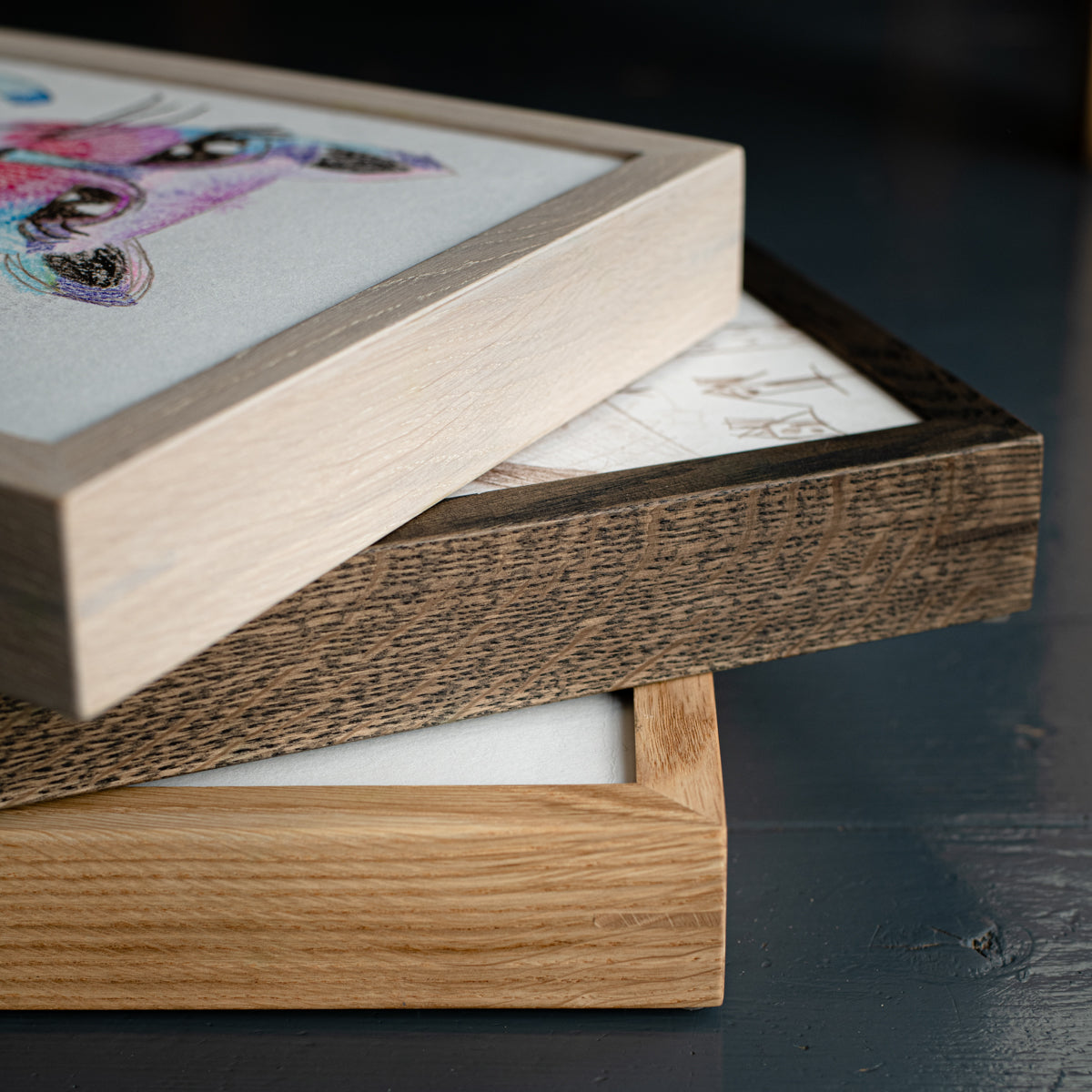 Rankų darbo rėmeliai pagaminti iš ąžuolo medienos - tvirti ir ilgaamžiai.